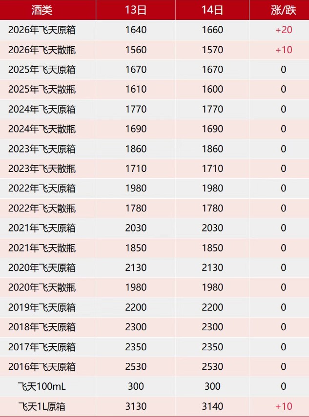 飞天上涨。4月14日茅台行情价。高危职业:茅台高管