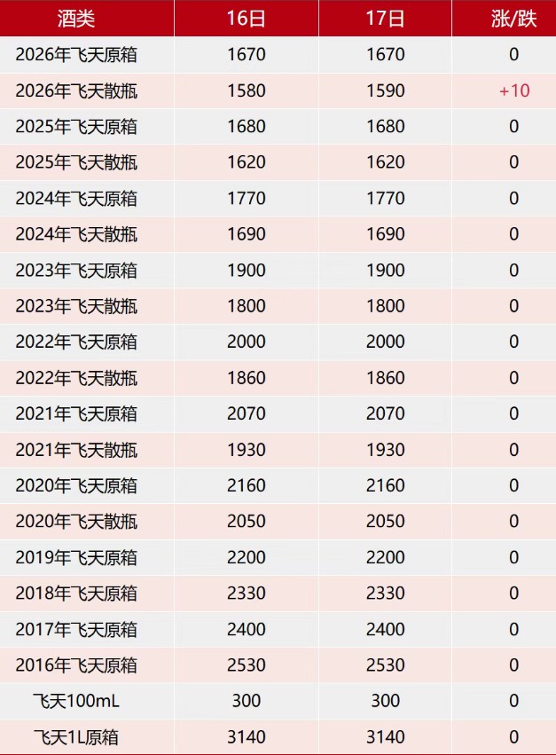 飞天上涨。4月17日茅台行情价。茅台营收和利润首次出现下滑。