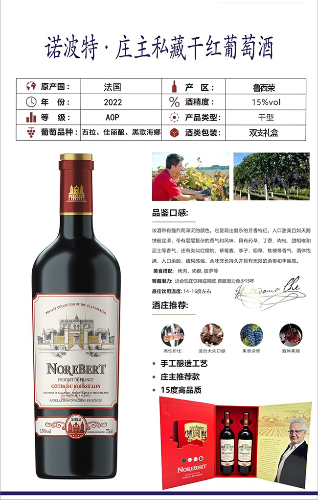 品鉴口感:该酒带有强烈而深沉的颜色。它呈现出复杂的芳香特征。入口甜美且如天鹅绒般丝滑,带有层层复杂的香气和风味,具有药草、丁香、肉桂、甜胡椒和泥土等香气,还有类似红樱桃、草莓酱、李子、烟草、焦糖等香气,酒体饱满,入口柔顺,结构感强,余味悠长持久并具有无限的柔美和丰腴感。