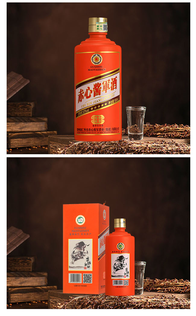 赤心酱军酒业(集团)坚持“秉承传统酿造工艺,传承企业文化”的经营理念,注重酒文化与人与自然的结合,精选本地优质红高粱、小麦,以赤水河河水为酒引,严格按照端午采曲、重阳投料之传统工艺生产。通过九次蒸煮、八次堆积发酵、七次取酒,通过长期窖藏,并由集团公司总工程师精心勾兑,产品具有酒体醇厚、酱香突出、幽雅细腻、回味悠长、空杯留香之特点。