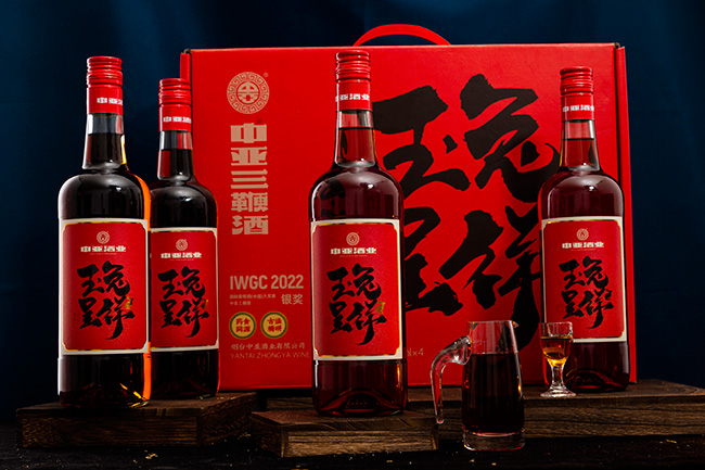 以即墨黄酒和优质清香型白酒为底,加以多味地道药材,浓厚配以甘醇,精纯叠加风味,形成经典的中亚三鞭酒。